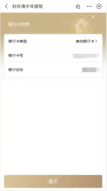 4、填写对应的银行账户信息,即可完成办理,审核结果将在三个工作日内通过短信告知。