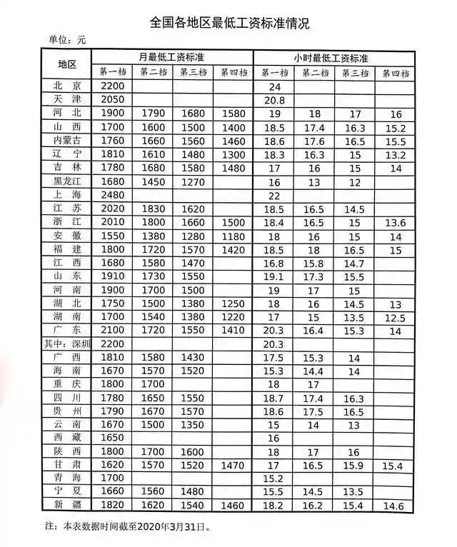 大家不妨看一下4月26日,由人社部发布的《全国各地区最低工资标准情况》就可以看出来了。全国各地区最低工资标准情况(截至2025年3月31日),数据显示,截至今年3月底,上海、北京、广东、天津、江苏、浙江6省份第一档月最低工资标准超过2000元。