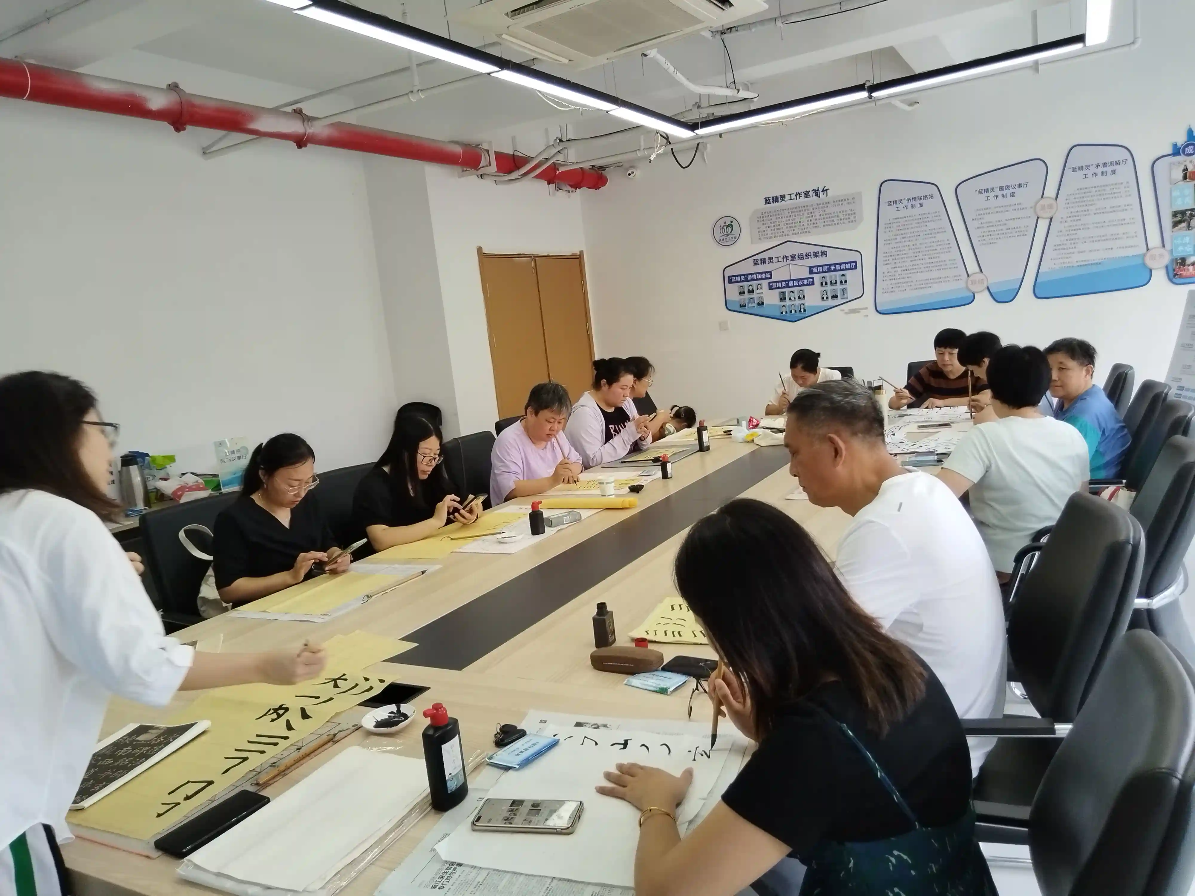 在书法活动中,专业书法老师为居民们传授了软笔书法的基本技法和创作方法。从基础的笔画练习到更复杂的书法作品创作,居民们在不断的学习和实践中逐渐掌握了软笔书法的精髓。在每次活动中,居民们都会带来自己的书法作品进行交流和展示,大家互相学习、共同进步。