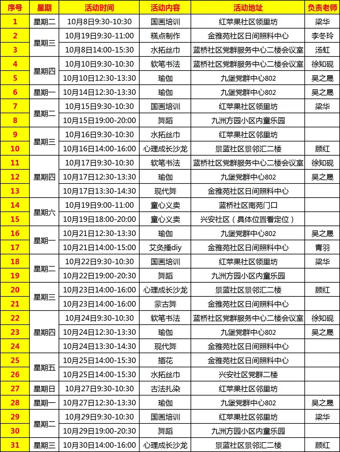 在这个充满活力的季节里,9i舞蹈社共举办了6次舞蹈教学活动,包括蒙古舞和现代舞两种风格,为居民们提供了一个展示自我、释放激情的舞台。