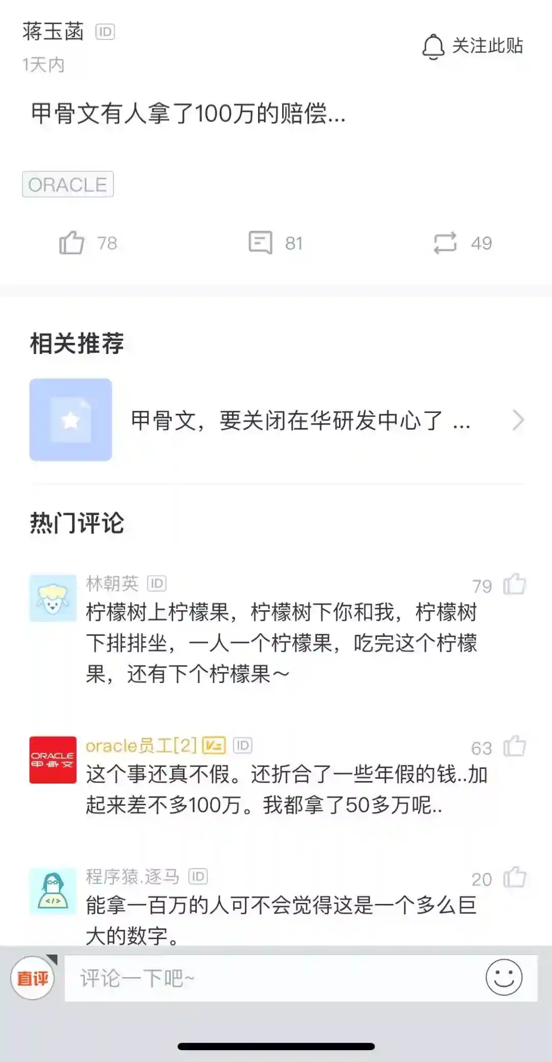 今天听闻甲骨文关闭中国研发中心,老王第一时间去做了了解。全中国研发部门全部裁撤,首批人员赔偿N+6,下面我们就来了解一下甲骨文是一家怎么样的公司。