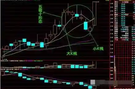 在这里说到均线乖离,主要是指在股价调整或整理时期乖离变化的情况,由于大小形态所在的位置,分别处于上升趋势下轨和上升波段的五日均线上,那么就应该分开来阐述。乖离是由超值的乖离随股价的调整或整理,逐渐向所隶属的均线复归直至归到零值。换句话说就是,在上升趋势中表现大形态的股价,离下轨线远了(即处在趋势大通道的上轨),就要以主动下调或静侯等待的方式,使期靠近趋势下轨线;在上升波段中表现小形态的股价,离五日均线远了(即处在波段小通道上轨),也是以主动下调或静侯等待的方式,使其靠近五日均线。两都分别在靠近之后,通常会较为迅速地做出反应,正向起动还是反向开跌,决定于代表两条底线的长、中期奖金意志。