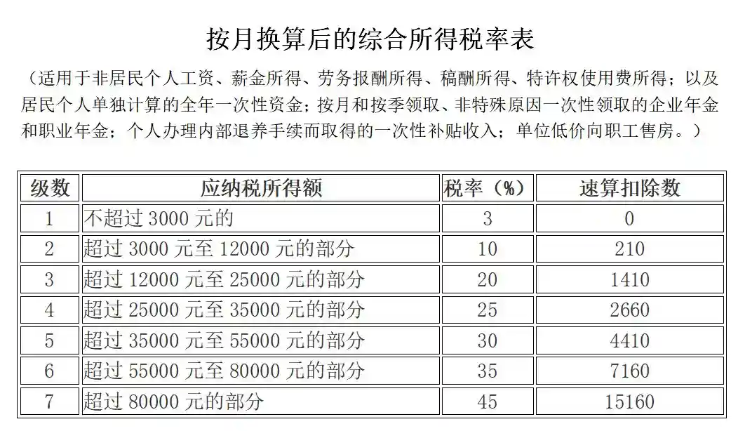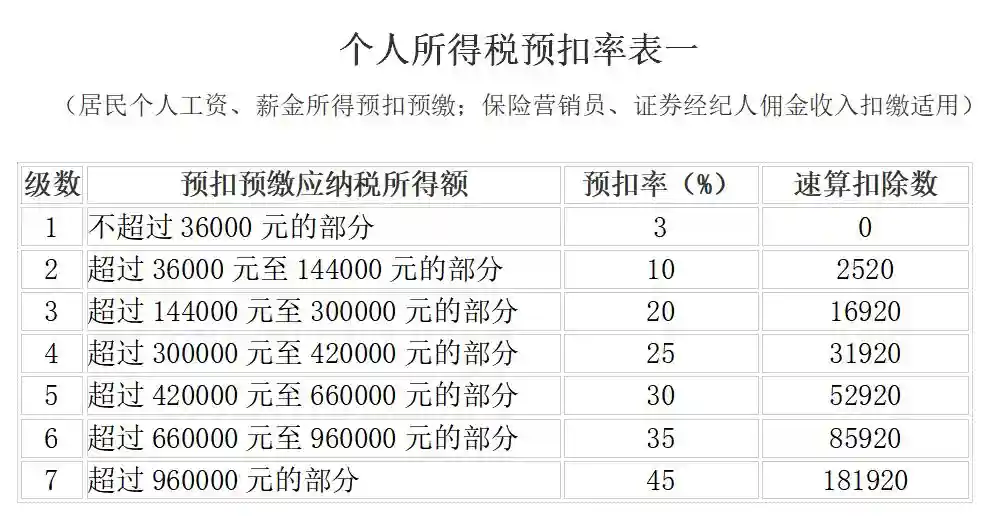 一、个人所得税税率表