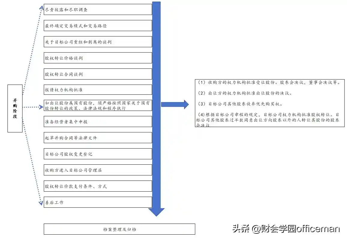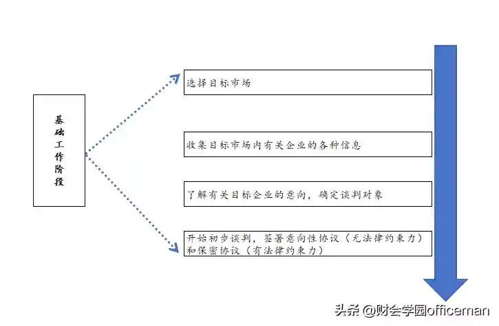 股权并购的基本流程包括两个环节,即基础工作阶段和并购阶段。