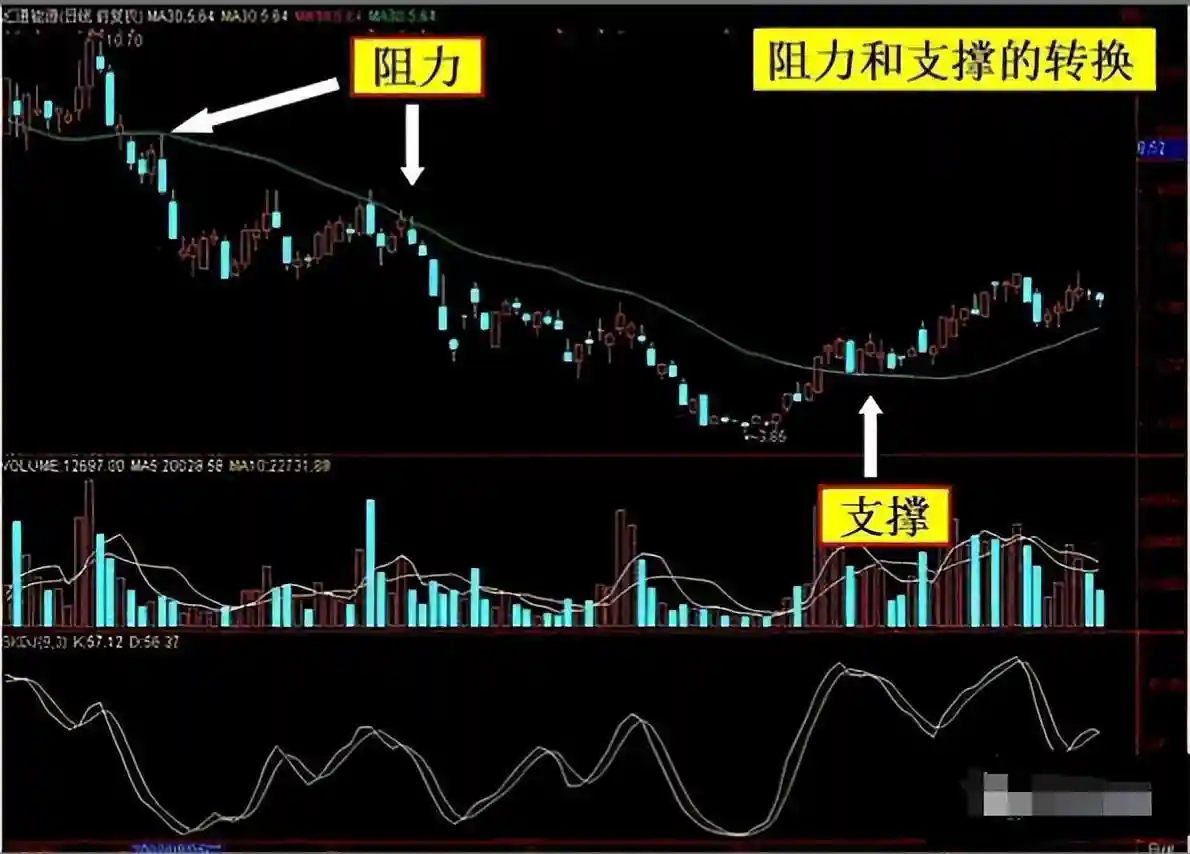 30日均线是投资者最为常用均线,具有极强的实用性和可靠性。在中期下跌趋势中,30日均线一般拐头向下,股价的反弹往往会受到30日均线的阻力,较难站上30日均线。当股价继续上涨并向上突破30日均线,盘面上的买盘逐步增强,成交量明显放大,成为股价回调时的强有力支撑线,往往会有一轮中期上升。